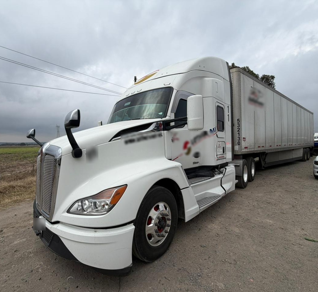 En el sitio, el personal operativo tuvo contacto con un tractocamión marca Kenworth, modelo 2023, acoplado a un semirremolque marca Wabash, modelo 2021, color blanco, con placas del estado de Maine, Estados Unidos.